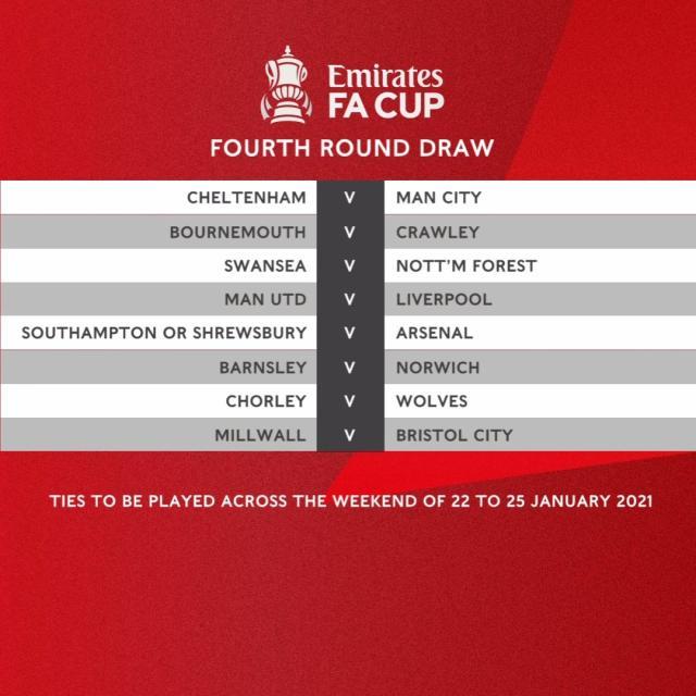 足总杯第4轮对阵(举行时间1月22日-25日):